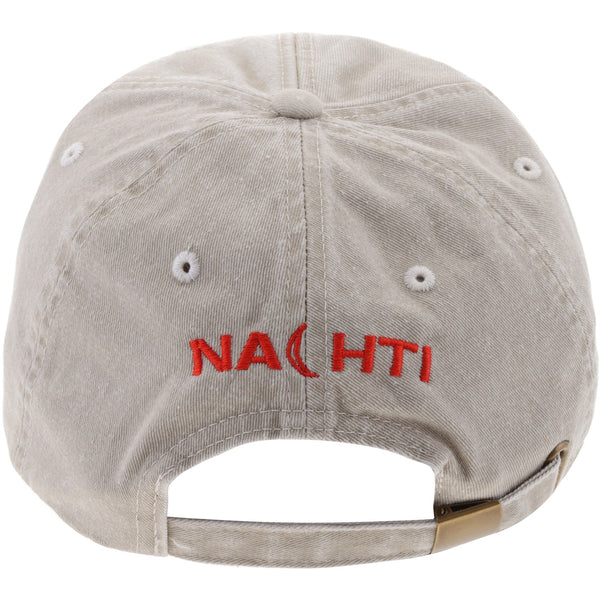 Diese Unisex-Cap im Low-Profile-6-Panel-Design ist der perfekte Festivalbegleiter. Gefertigt aus 100 % Baumwolle, bietet sie mit dem verstellbaren Verschluss eine bequeme Passform. In sandfarbenem Vintage-Stil gehalten, ist sie mit einem roten Nachti-Elefanten-Stick vorne und dem Nachti-Mond-Logo auf der Rückseite verziert. Für beste Pflege empfehlen wir Handwäsche.