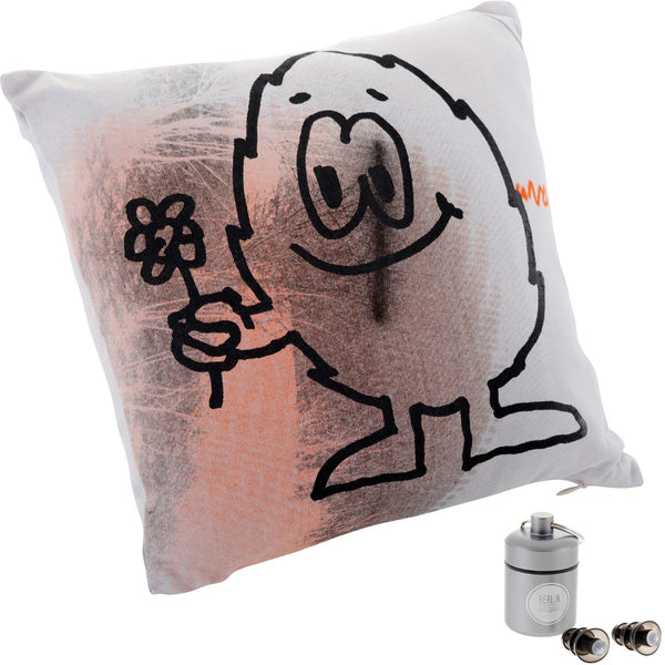 Mach es dir auf dem Sofa, im Bett oder auf Reisen gemütlich, lege deine Kopf an das weiche, nachhaltige Kissen und genieße die Stille. Das kompakte Upcycling Kissen aus recyceltem Sweater Material ist dein idealer Begleiter für Zugfahrten, Flüge oder lange Autofahrten oder bringt Festival Vibes in deine vier Wände. Wenn du absolute Ruhe brauchst, ob im Flugzeug, im Hostel, beim Power Nap Zuhause, zum Lesen oder einfach zum Abschalten, sorgen die Ohrstöpsel für die nötige Stille.